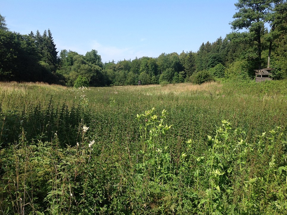 Das Gelände vor Beginn der Arbeiten. Der "Wannbach" fließt linksseitig der Lichtung.